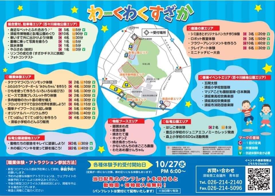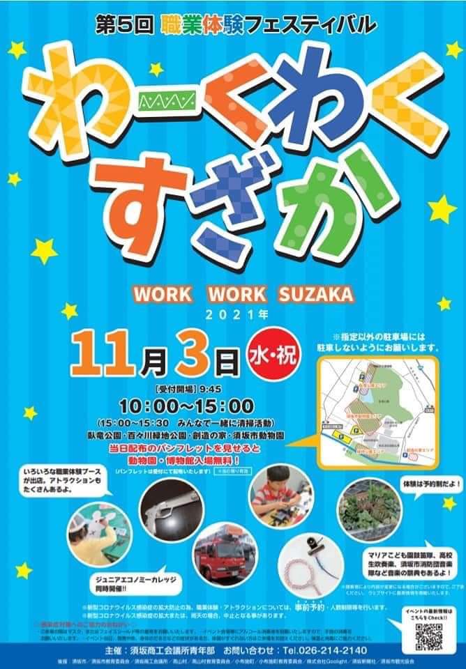 本年度も11月3日に行なわれる『わーくわくすざか』に参加します。今回は百々川緑地公園でおなじみ『てっぱんでてっぽうを作ろう』で参加します。10月27日の18時から予約開始となっております。この投稿をしている現在すでに午前中は満員となっております。お早めにご予約をお願い致します。様々な体験が出来ますので是非お越しください。 関連記事 RELATED POSTS わーくわく臥竜山 職業体験フェスに参加します 2022.10.25イベント / 社会活動貢献 新工場稼働開始しました! 2024.05.14企業情報 『OUTDOOR LIFESTYLE AND FEEL SUZAKA』に参加します! 2021.10.27イベント 『産業フェアin信州2021』に参加します! 2021.10.07イベント / 企業情報 『SDG’s防災フェス&キャンプ』に参加しました 2021.09.27イベント 防災フェスに参加します 2021.09.09イベント