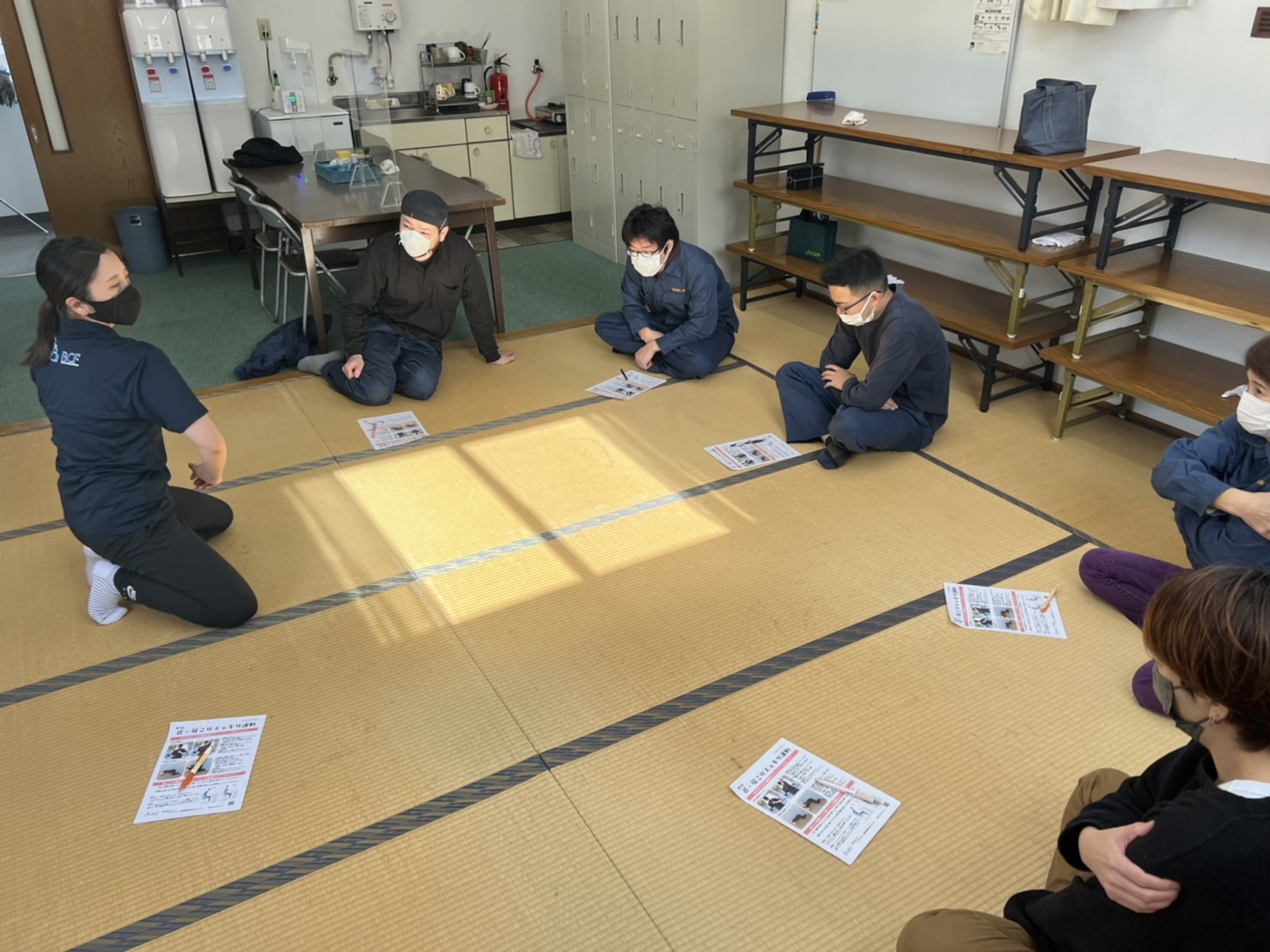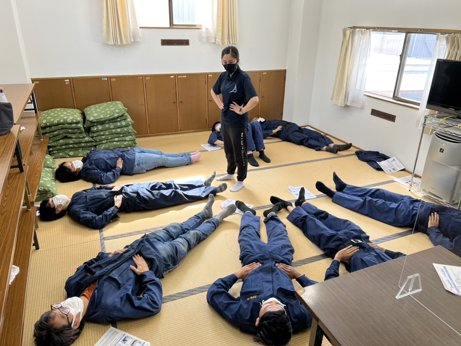 本年度より健康経営活動の一環で予定したリフレッシュ体操教室の第一回を実施しました。 『首・肩こりスッキリ運動』『腰痛緩和・予防運動』『フリーエクササイズ』の3グループに分かれて、㈱BCFの先生に指導を受けながら行ないました。 日頃あまり運動をしないせいか…先生のチェックにうめき声が出る方も… 毎月土曜日出勤日を利用して、継続する予定となっています。 関連記事 RELATED POSTS 『SDG’s防災フェス&キャンプ』に参加しました 2021.09.27イベント 防災フェスに参加します 2021.09.09イベント 『Yes!ものづくり』の撮影がありました 2024.12.19企業情報 SBTの勉強会を始めました 2024.07.24企業情報 / 社会活動貢献 新工場稼働開始しました! 2024.05.14企業情報 SDGsページ作成しました 2023.09.11企業情報 / 社会活動貢献