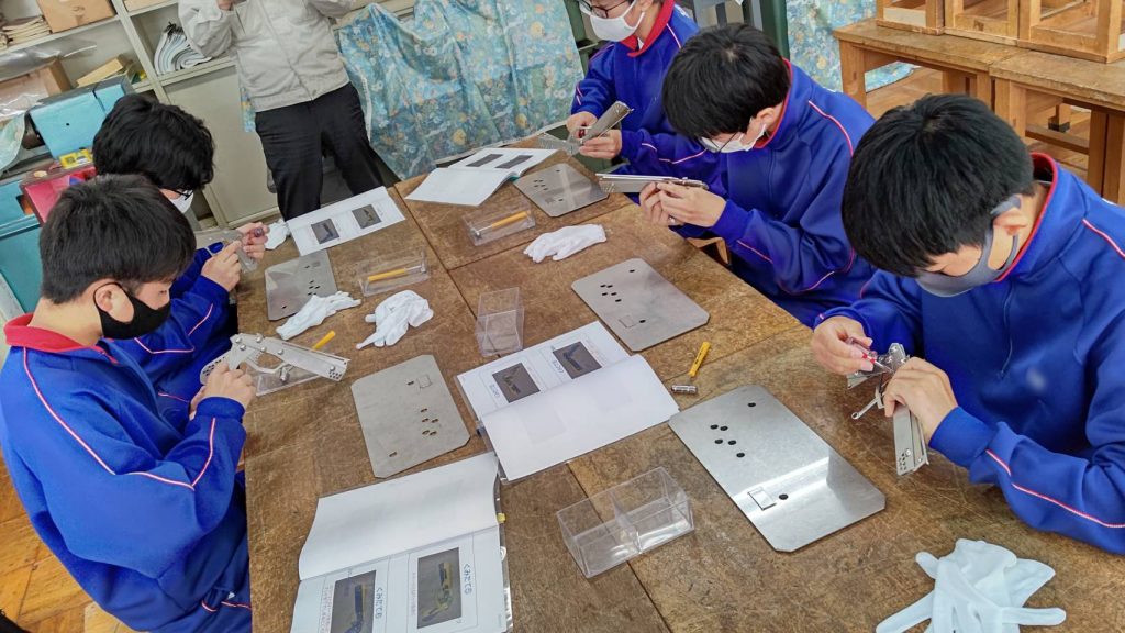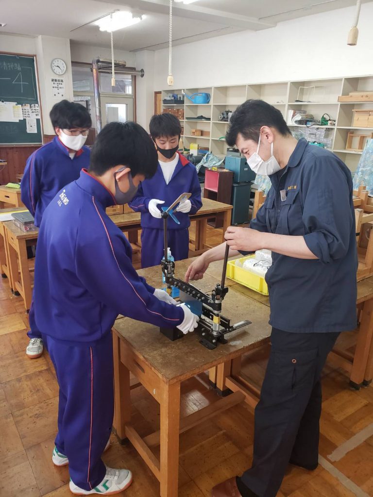 5月25日と26日に須坂商工会議所様主催の職場体験学習に参加してきました。今回は相森中学校と常盤中学校にて「精密板金って何?」という座学と「ブックエンドとゴム鉄砲」のワークショップを実施。中学生も真剣にキラキラ瞳を輝かせて聞いてくれたので、将来の人生の選択肢になってくれればと思います。